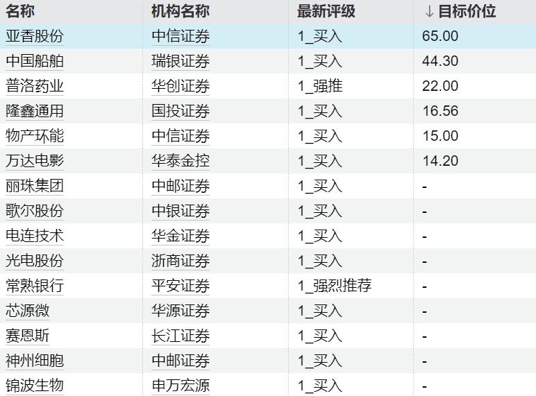 机构今日看好这些个股机构今日看好这些个股